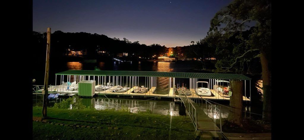 - Our brand new dock with covered boat slips, electric, and a fish cleaning station